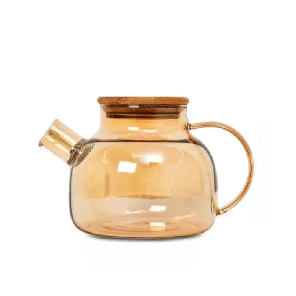 Chaleira 1,5lts vidro ambar tampa bambu