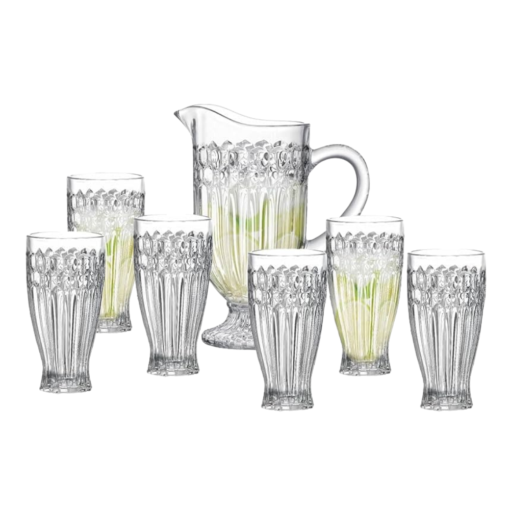 Conj jarra 1,15lts e 06 copos 300ml vidro madri 16205 Inga Import