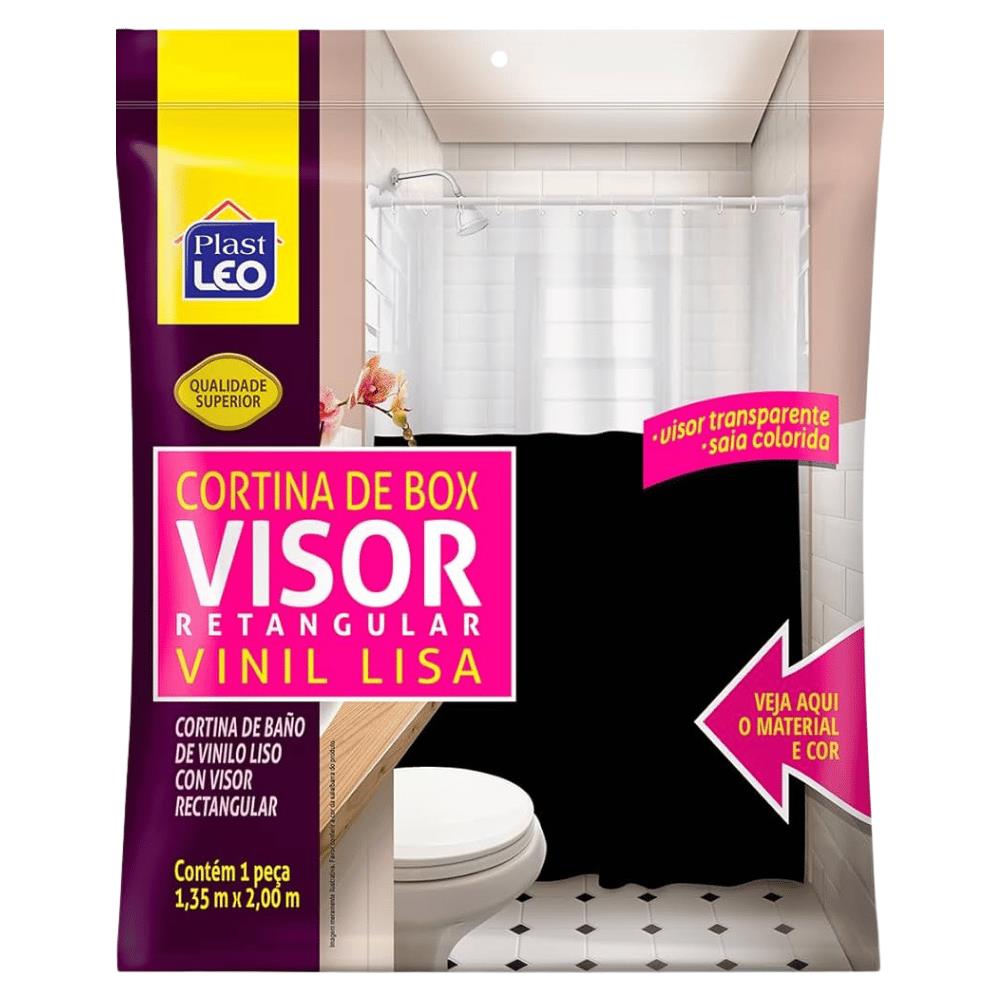 Cortina de box 1.35x200cm vinil lisa preto ref 621J Plastleo