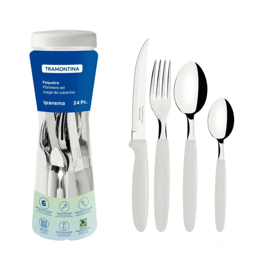 Faqueiro 24pcs ipanema cabo branco no pote 891 Tramontina