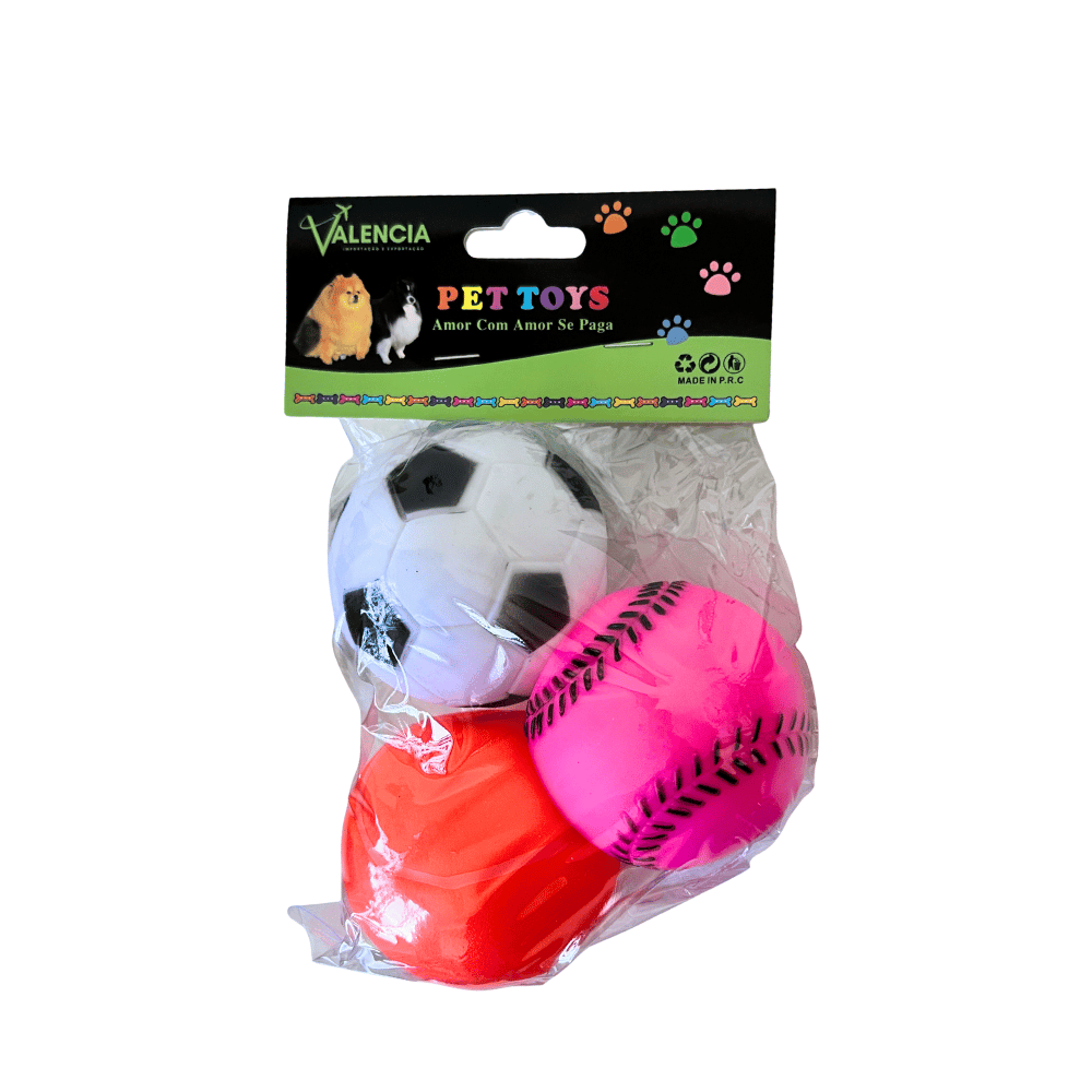 Jogo c/ 03 bolinhas color apito p/ pets ref 4437 Valencia