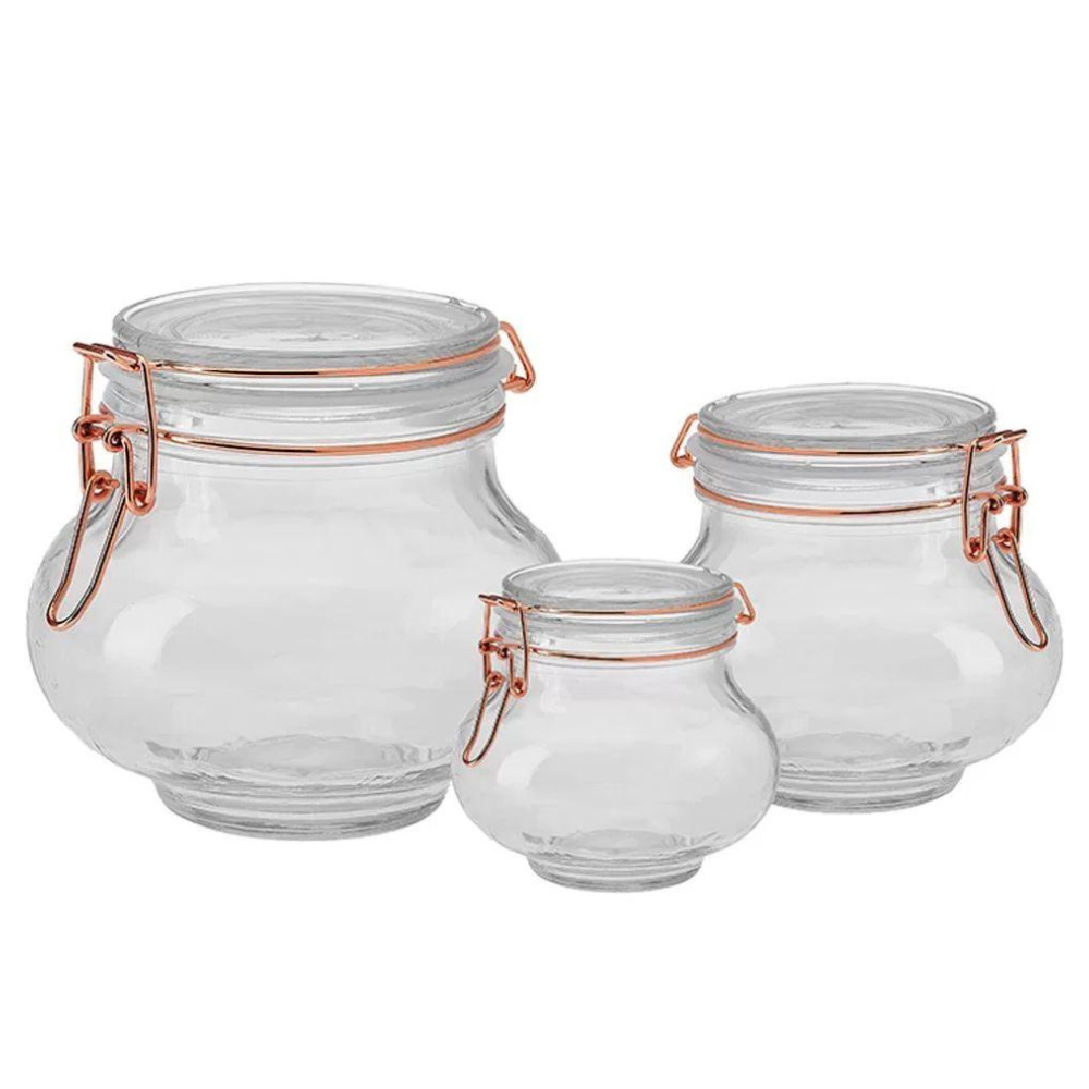 Jogo c/ 03 potes vidro hermetico 1lt/500ml/200ml