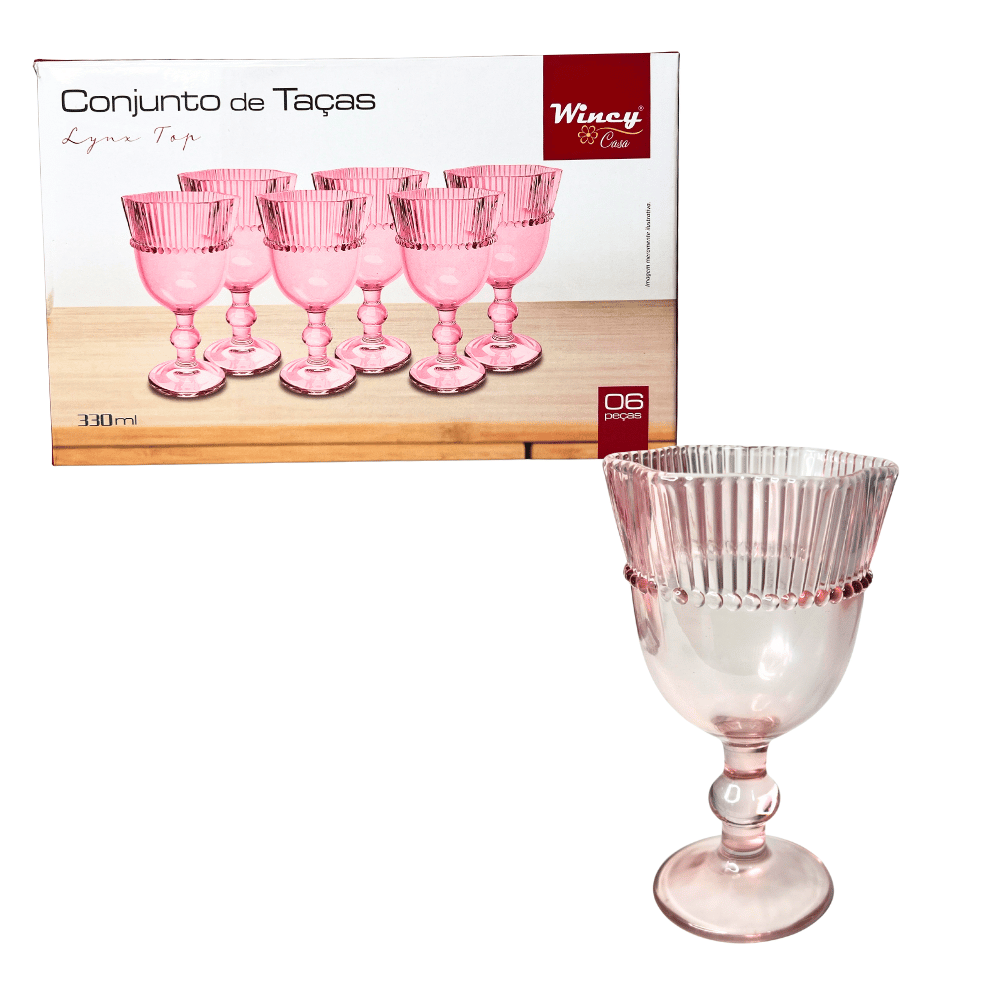 Jogo c/ 06 tacas 270ml sobremesa vidro lynx rose 3120 Rio de Ouro