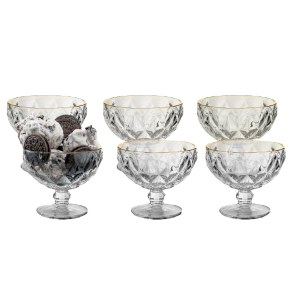 Jogo c/ 06 tacas 310ml sobremesa vidro diamond gold 88077 KeHome