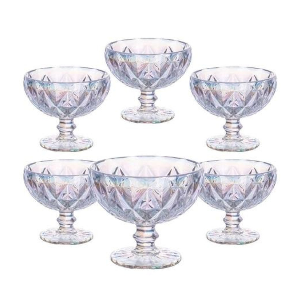 Jogo c/ 06 tacas 310ml sobremesa vidro diamond raibo 88065 KeHome