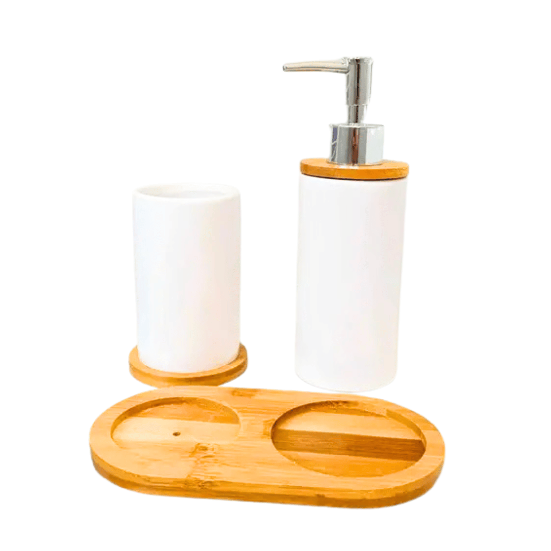Kit banheiro 03 pcs porta sab/escova/bandeja