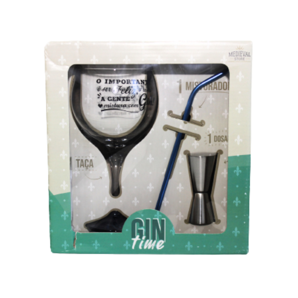 Kit taça 600 ml gin c/ canudo azul e dosador ref 8665 Medieval