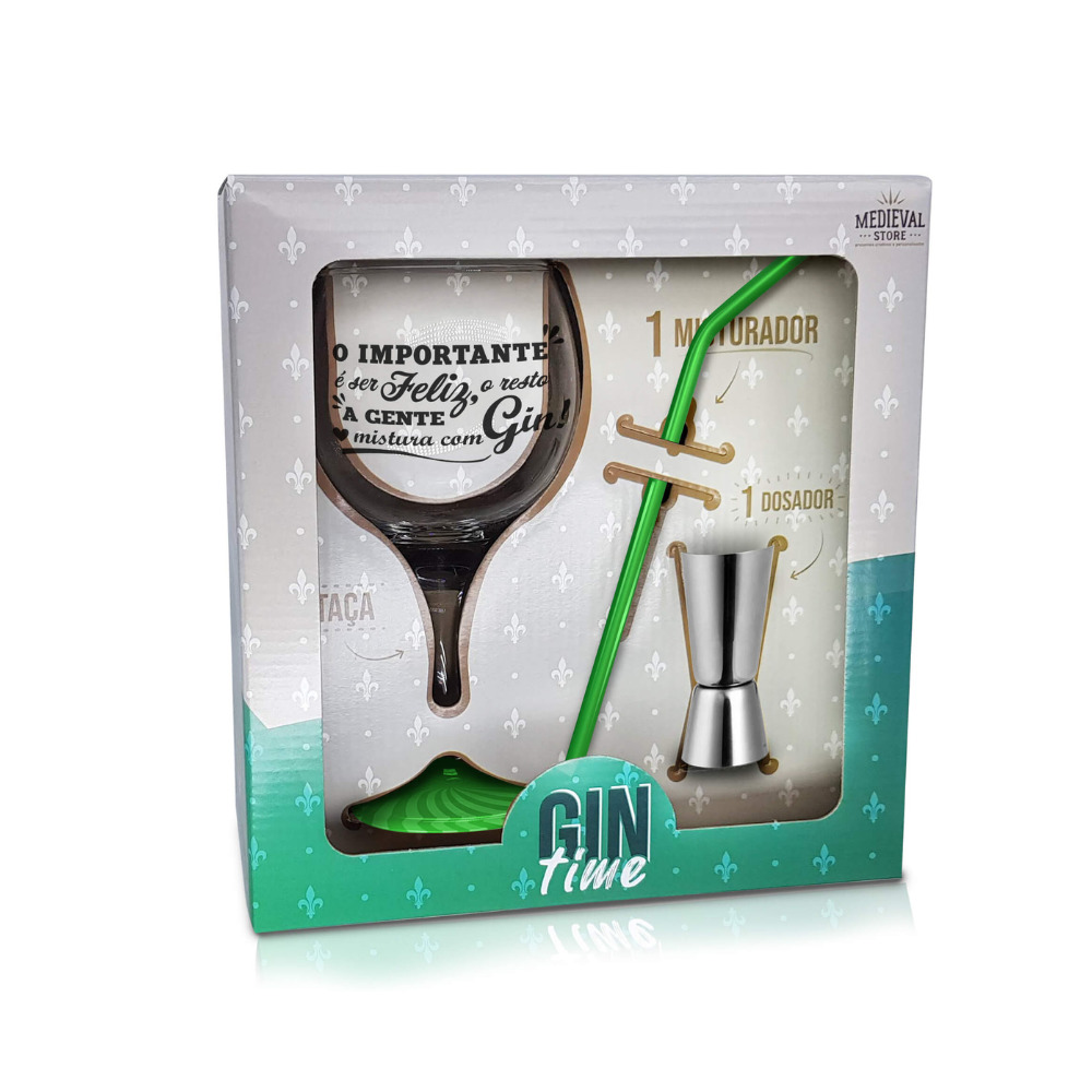Kit taça 600 ml gin c/ canudo verde e dosador ref 8586 Medieval