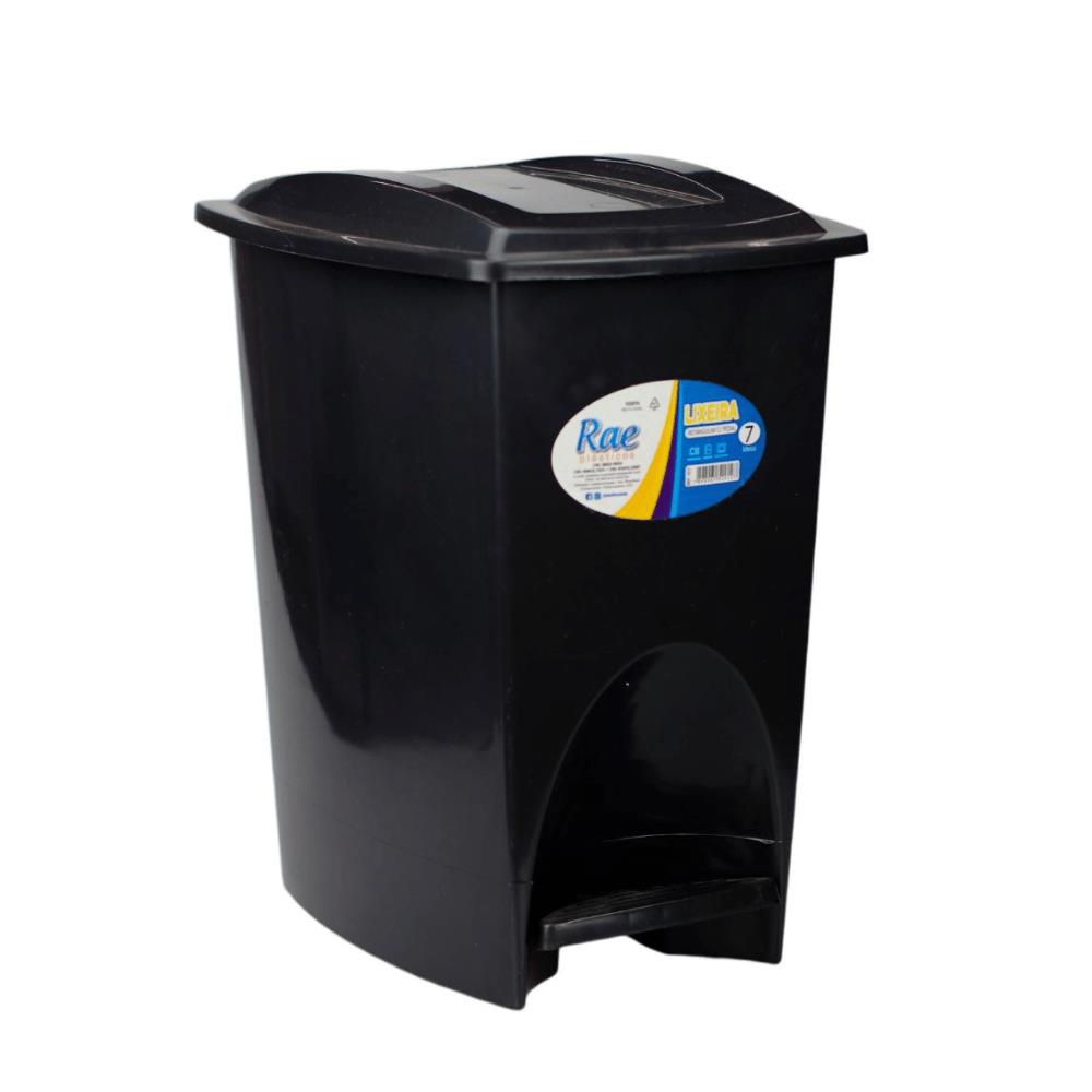 Lixeira 07 lts c/ pedal retangular black ref 9002 Rae Plasticos