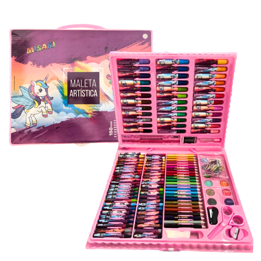 Maleta artistica infantil rosa 150pcs pintar ms150g OM Utilidades